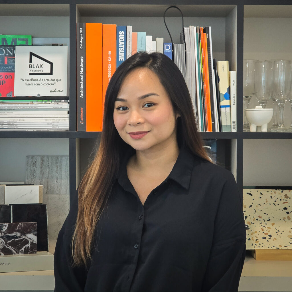 Allynah Dalisay keeps BLAK humming—part organisational powerhouse, part emerging designer. Filipino‑born and Dubai‑based, she serves as PA to the Managing Director while developing as a Junior Interior Designer, balancing calendars, contractors, and CAD in the same steady week.
